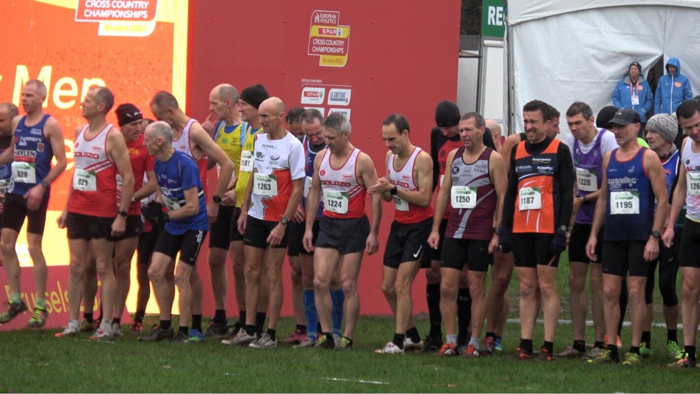 Aangezien het startprotocol van het EK nog een laatste keer werd uitgetest, moesten alle deelnemers vrij vroeg aanschuiven in de oproepkamer, waar ze in extremis ook een registratiechip aan de veters moesten vastmaken. Na die toch wel hele lange procedure, waardoor de opwarming terug werd afgekoeld, konden de masters hun benen nog een laatste keer losgooien in de ruime grasvlakte voor de startlijn.