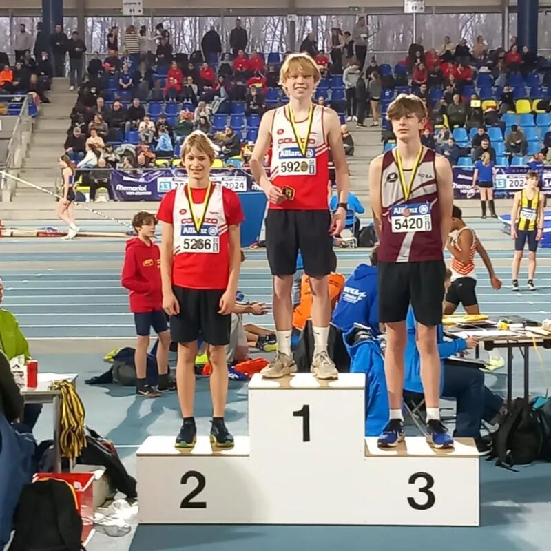 Katherine Rupert behaalde een mooie titel op de 400m. Stien Devroey haalde de titel in het hinkstapspringen. Niels Vandezande verbaasde zichzelf op de 60m met een winst in een sterke 7.47, wat niet alleen een nieuw PR is, maar ook winst opleverde. De tank was nog niet leeg, want op de 200m haalde Niels zijn 2de overwinning, maar mocht Mats Vangrunderbeeck als tweede mee op het podium. Jan Breugelmans gaf zijn titel in het kogelstoten glans met een nieuw PR. Hier mocht Tijs Vanhellemont als tweede mee op het podium. Ook bij het verspringen mocht Jan op het hoogste schavot, dit keer met Florian Wittebolle aan zijn zijde op de 2de plaats. Wout Vanderhaegen sprong naar polsstokgoud en liep naar brons op 60mH, beide met een PR.