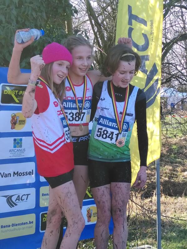 Bij de pupillen wat minder atleetjes dan we gewend zijn, maar samen met de Halense atleten toch ook weer een duidelijke rood-witte aanwezigheid. Iedereen gaf het beste van zichzelf ondanks enkele verloren spikes op het terrein, een wedstrijd die 2 minuutjes te vroeg begon en die dekselse modder...
