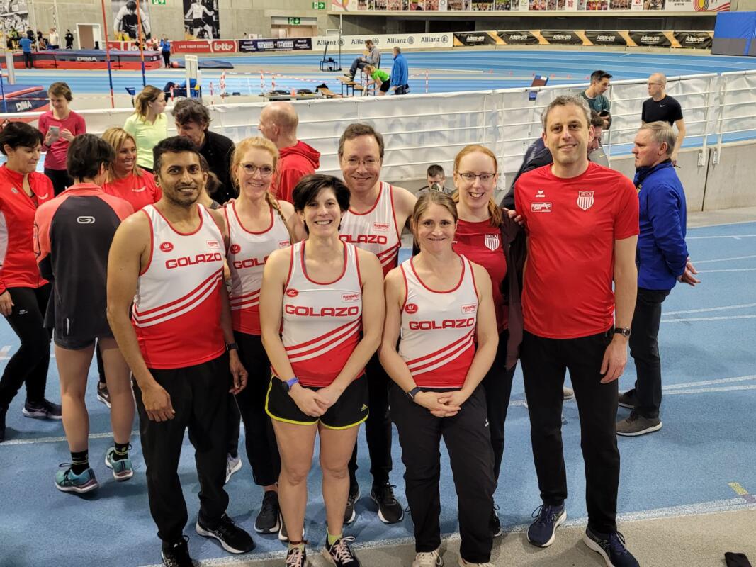 Zaterdag was de prachtige atletiekindoortempel van Louvain-la-Neuve helemaal voorbehouden aan de Masters, die er gedurende een hele dag, net als twee jaar geleden, hun Belgisch (en provinciaal) kampioenschap mochten betwisten. Vrij dicht bij onze thuisbasis dus, zoals de naam van de locatie laat vermoeden. Dus waren er in de atletiektempel van Blocry ook redelijk wat rood-witte DCLA-shirts te spotten. 7 vrouwen en 9 mannen kwamen allemaal samen 23 keer in actie voor hun kampioenschap. Aan het eind van de dag waren er liefst 7 nationale titels, drie zilveren en evenveel bronzen medailles aan DCLA-Masters uitgereikt. Daarbij kwamen nog 17 (!) provinciale titels en werden er vijf clubrecords verbeterd. Die laatsten kwamen, op één uitzondering na, allemaal op conto van onze dames…