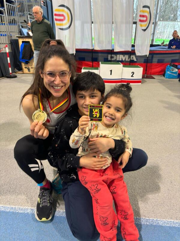 Dat laatste geldt uiteraard ook voor W35 Sofie Rummens die zaterdag ook aan haar allereerste Belgisch masterskampioenschap toe was. Sofie is aardig op dreef de laatste weken en begon in Blocry met een hoogspringconcours waarin alle leeftijdscategorieën samen van start gingen. Gevolg voor Sofie was uiteraard een lange wachttijd, niet echt bevorderlijk voor de concentratie. Om een idee te geven: de tweede in de overall-competitie klaarde 1m34. Toen moest Sofie haar wedstrijd nog beginnen op 1m51. Die hoogte klaarde ze net als 1m55, maar de frisheid ontbrak nadien om een poging richting haar clubrecord van 1m65 te ondernemen. Overigens was ook mama An Vanhellemont in dezelfde competitie aan de slag: onze meest ervaren DCLA-master klaarde 1m21, een evenaring van haar clubrecord van vorig jaar en goed voor een zilveren W55-medaille, achter een andere mama van een beroemde topatlete overigens… Sofie maakte zich in de late namiddag ook nog op voor de 200m en ook die afstand domineerde ze met brio: in 27”51 overtrof ze de beste chrono uit serie 1 (27”87) en meteen was haar tweede nationale titel een feit. Meer nog: ze verbeterde daarmee het clubrecord van Maryam Amellal die in 2007 27”99 had afgeklokt. Twee keer goud en 1 keer zilver voor de familie Rummens. Moeilijk om te verbeteren, tenzij ene Tim Rummens ook zijn zinnen op deze kampioenschappen gaat zetten.