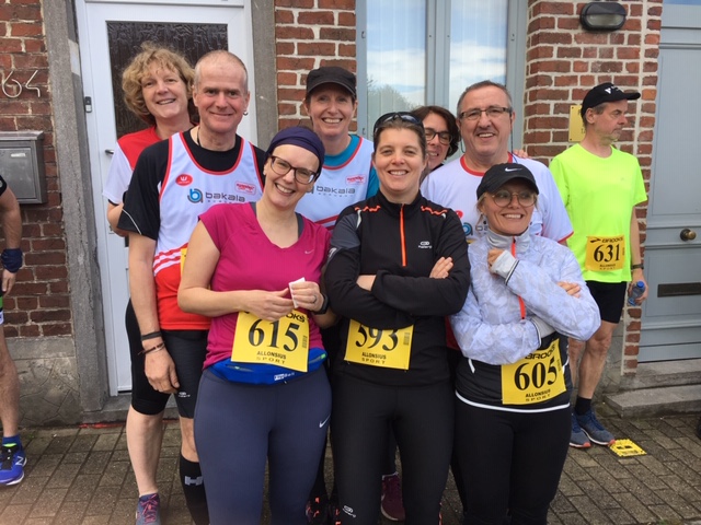 Voor de door ons gekozen afstand van iets meer dan 14 km waren wij met 8 lopers van onze groep. Aangezien ik als enige man in het gezelschap een beetje steun kon gebruiken om de dames het hoofd te bieden was Eric Jiroflee als versterking mee naar Halle gereden.
