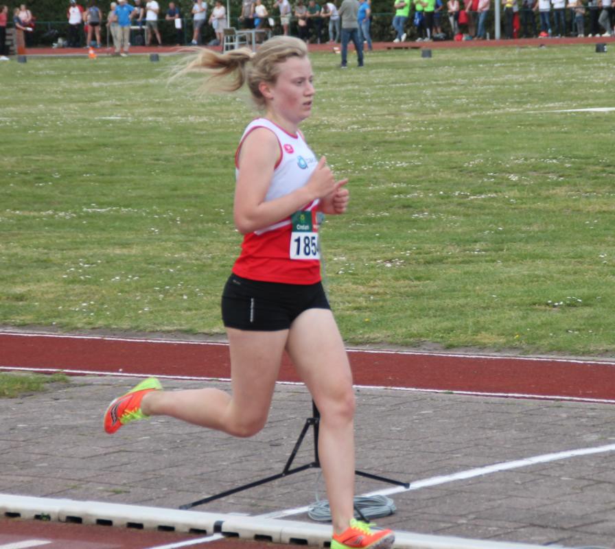 In een tactische 800m spurtte Mirte Fannes eveneens naar een mooie 3de plaats (2:16.27).